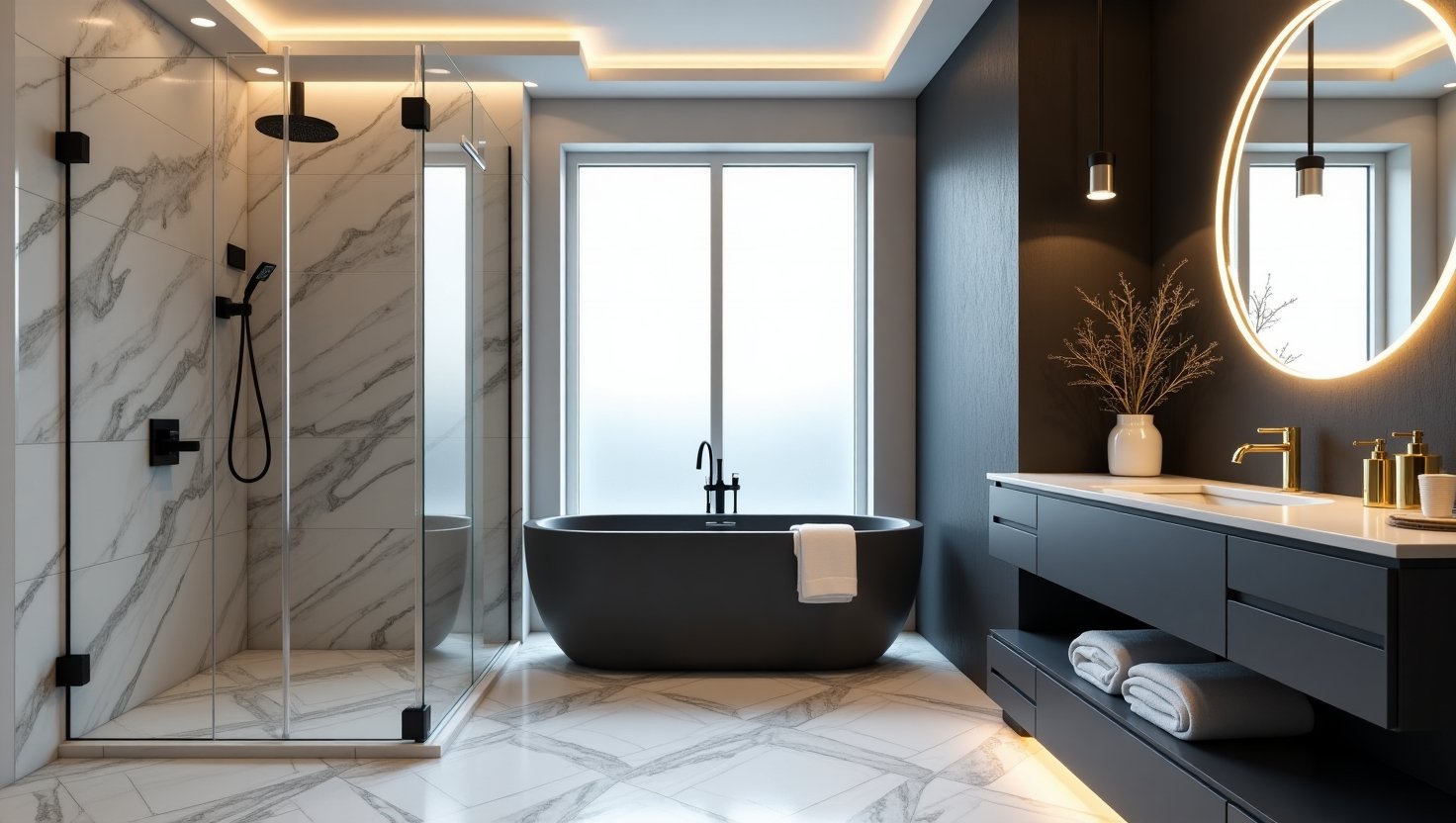 Our Frosted Glass Shower Partitions provide enhanced privacy while maintaining a modern look. The textured glass reduces visibility while allowing natural light to flow.